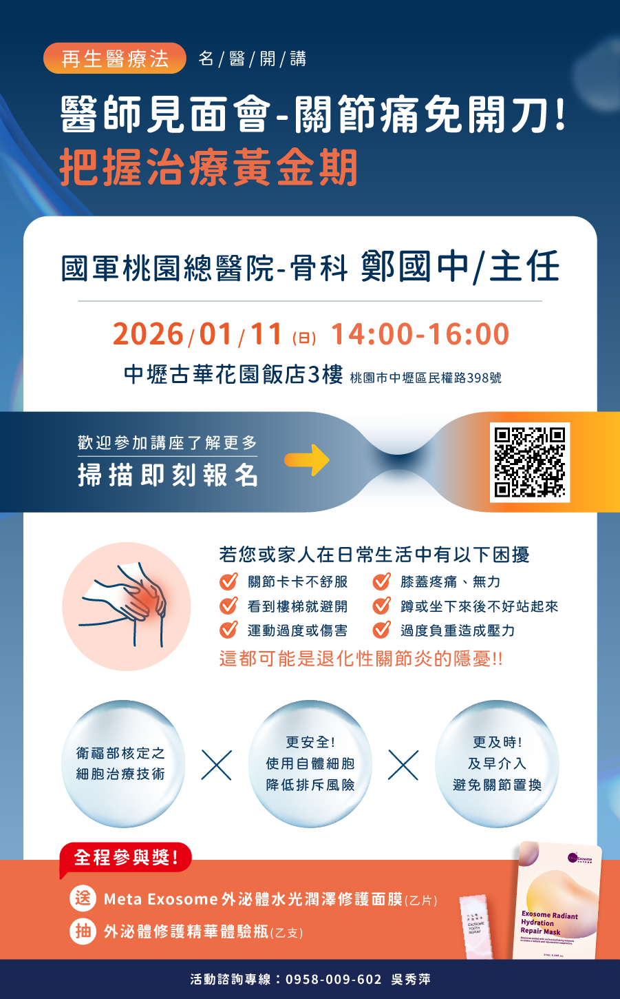 主題1:醫師見面會-關節痛免開刀!把握治療黃金期
